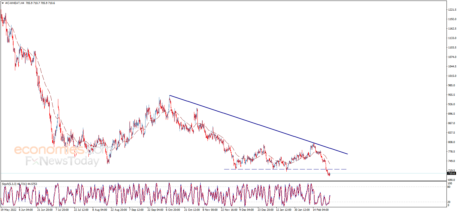 Wheat price fluctuates within sideways track since yesterday, noticing that stochastic loses its positive momentum clearly, waiting to motivate the price to resume the expected bearish trend on the intraday and short term basis, which its targets begin at 700.00 and extend to 675.00 after breaking the previous level.
