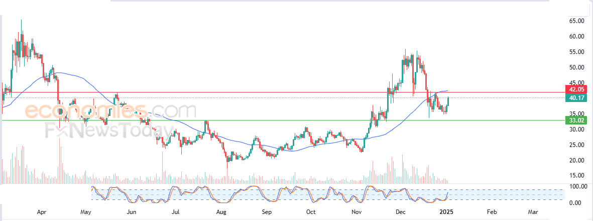 Therefore we expect the price to return lower, targeting the support of $33.00, provided the resistance of $42.00 holds on.