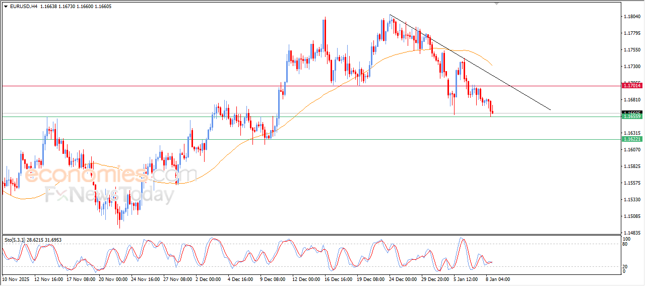 The (EURUSD) declined in its last intraday trading, leaning on the key support level at 1.1655, this support represents our expected target in our previous analysis, amid the dominance of bearish corrective wave on the short-term basis, with its trading alongside supportive trend line for this trend, besides the continuation of the negative pressure due to its trading below EMA50, forming intensifying pressure that might lead it to extend its losses on the near-term basis.