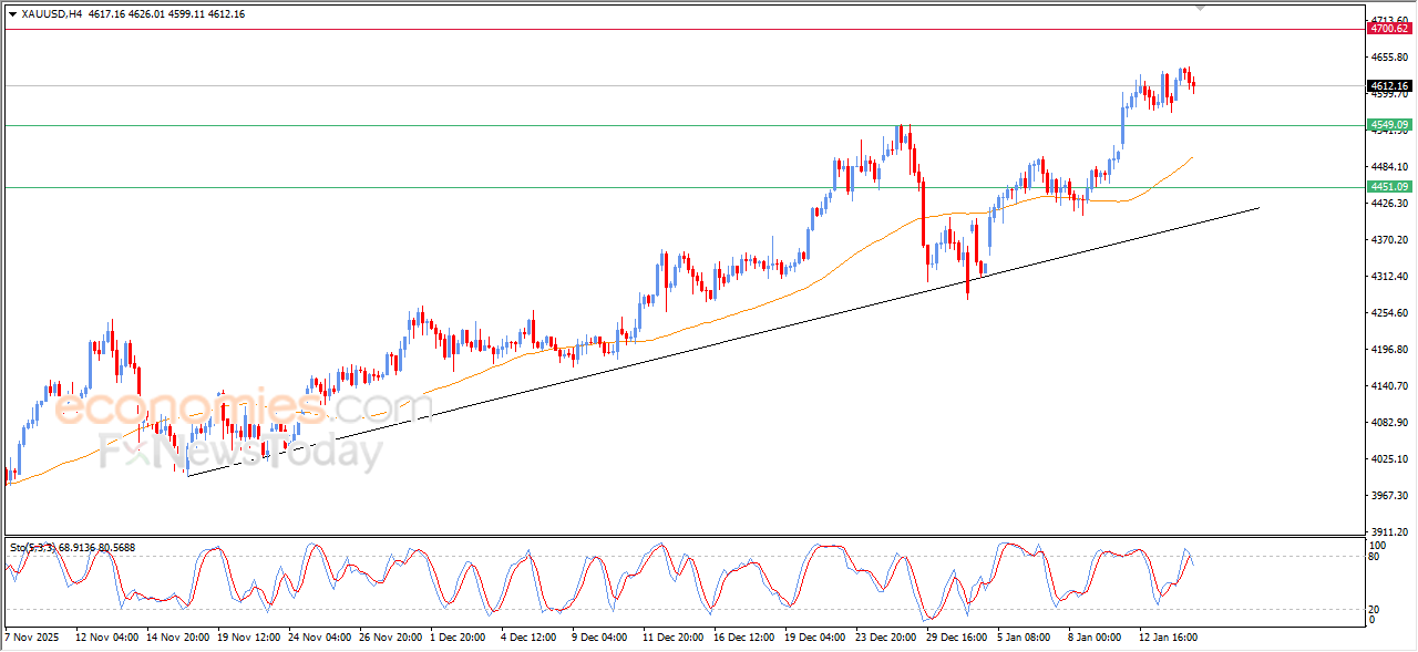 (Gold) declined in the last intraday trading, to attempt to gain bullish momentum that might help it to recover and rise again, attempting to offload some of its clear overbought conditions on the relative strength indicators, especially with the emergence of negative signals from there, amid the dominance of the main bullish trend on the short-term basis, with its trading alongside supportive trend line for this track.