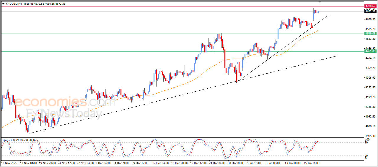 (Gold) settles on gains in the last intraday trading, moving in tight range attempting to gain the required bullish momentum to help it to record new all-time highs, attempting to offload some clear overbought conditions on the relative strength indicators, with its trading alongside minor and main trend line that supports this trend.