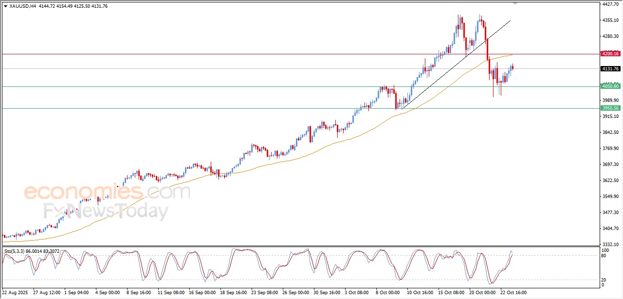 The (Gold) price declined in its last intraday trading, after the relative strength indicators reaching overbought levels, exaggeratedly compared to the price move, to indicate forming negative divergence, amid the continuation of the negative pressure that comes from its trading below EMA50, under the dominance of bearish corrective wave on a short-term basis.