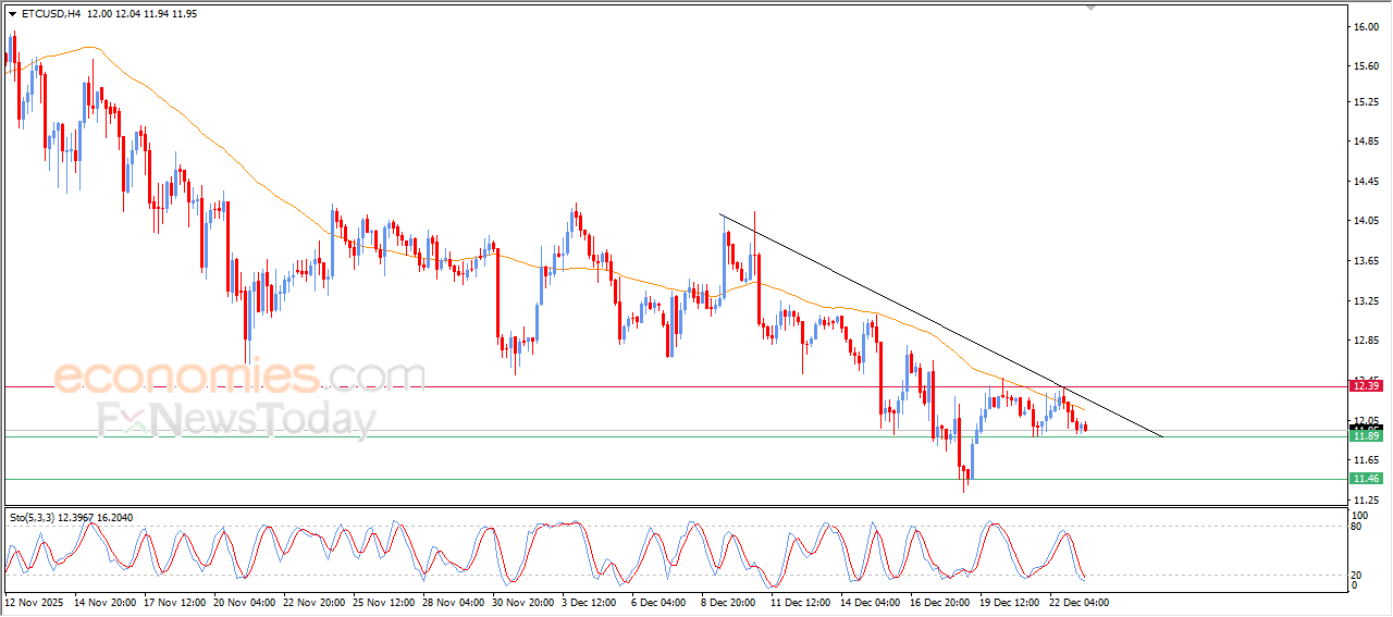Ethereum Classic (ETCUSD) declined in its latest intraday trading, remaining under persistent negative pressure as it continues to trade below its 50-period SMA, which prevented the price from recovering during its previous movements. This comes amid the dominance of the main bearish trend in the short term, with price action moving alongside a minor downward trendline, reinforcing the stability of this negative path. At the same time, negative signals continue to emerge from the Stochastic indicator, despite its presence in extremely oversold levels.