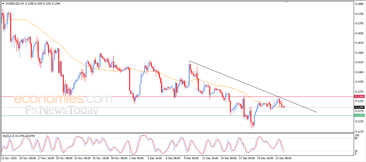 Therefore we expect the cryptocurrency price to decline further in the upcoming intraday trading, as long as resistance at 0.1345 holds, to target the first support level at 0.1255.
