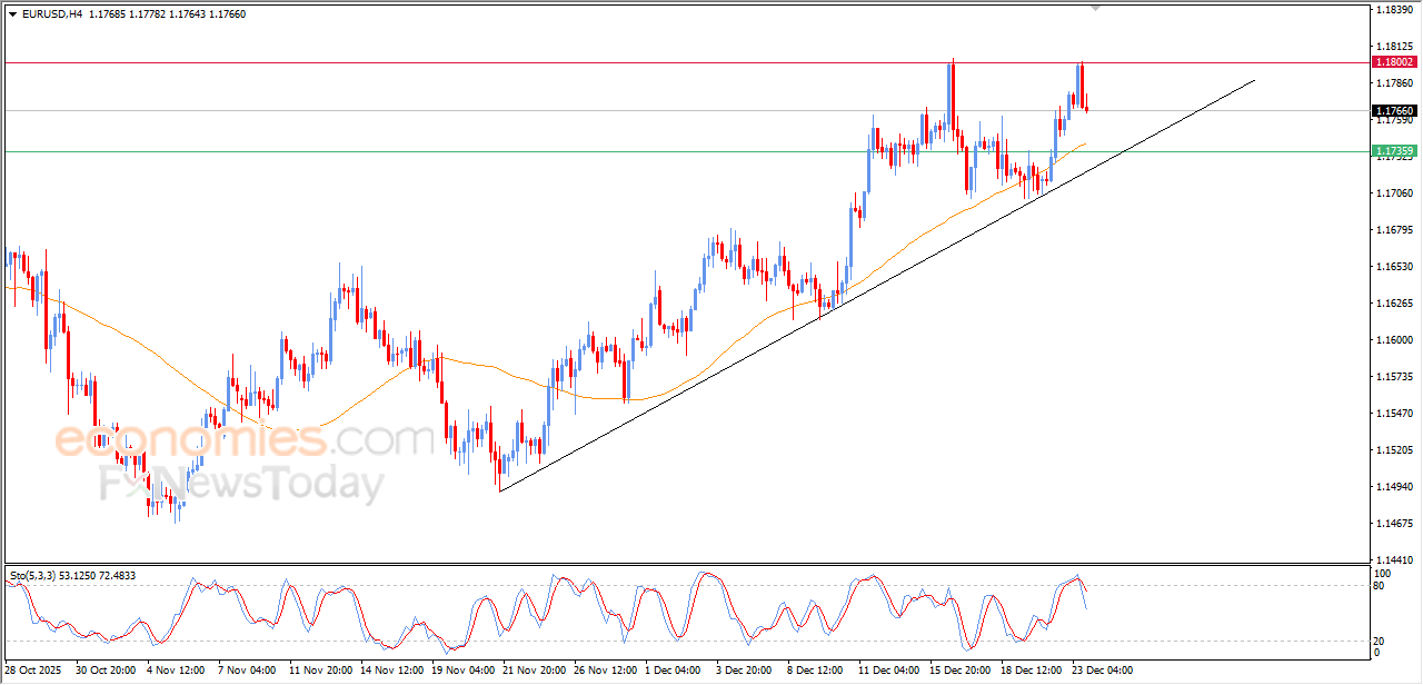 The (EURUSD) declined on its last trading in the intraday basis, after reaching our expected- morning target at 1.1800, attempting to gain bullish momentum that might help it to breach this resistance, and attempts to offload some overbought conditions on the relative strength indicators, amid the dominance of the bullish trend on the short-term basis and its trading alongside trend line.