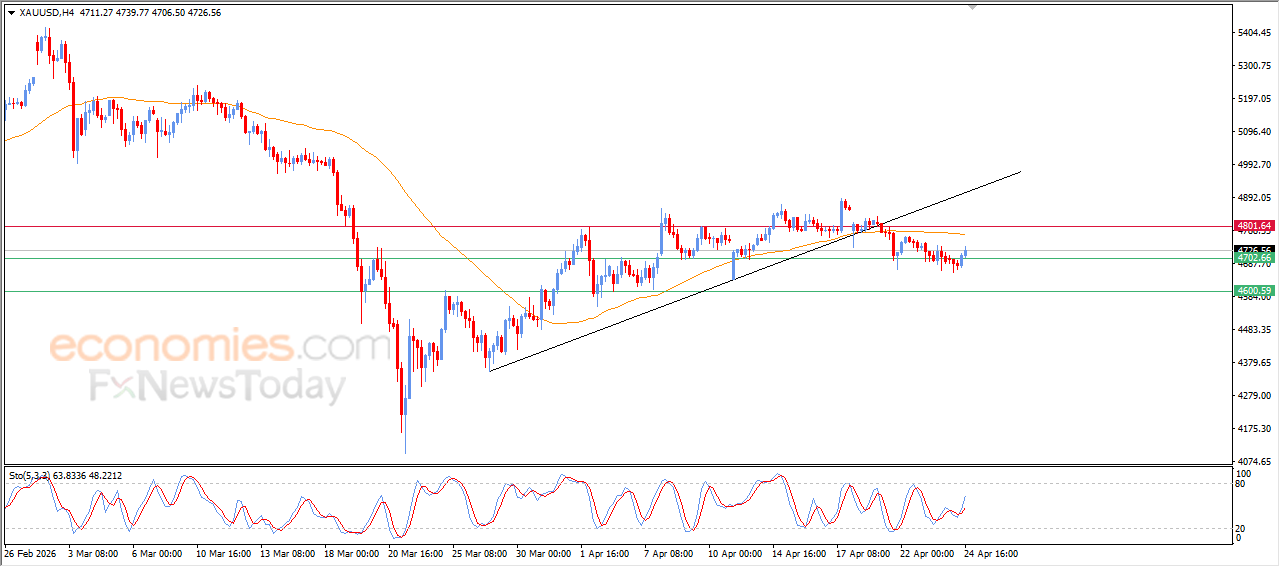 Gold rose during its recent intraday trading, supported by incoming positive signals from the relative strength indicators after reaching oversold levels. The price was also influenced by the firmness of the key support level at $4,700, attempting to recover some of its previous losses. This comes amid the impact of breaking a short-term corrective ascending trendline, along with continued negative pressure as it trades below EMA50, keeping the chances of a bearish rebound in place.