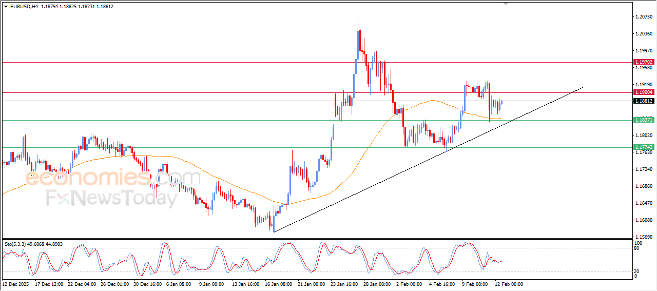 The price of EURUSD rose in its last intraday trading, amid the continuation of the dynamic support that is represented by its trading above EMA50, under the dominance of the main bullish trend on short-term basis, as it moves alongside supportive trend line for this path, accompanied by the emergence of positive signals from relative strength indicators, to indicate extending its gains in the upcoming period.