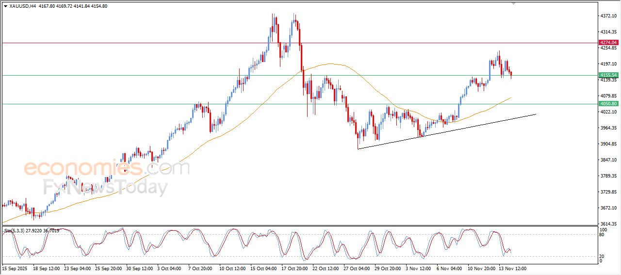 The price of (Gold) declined in its last intraday trading, to look for rising low to use it as a base to help it gain the required bullish momentum for its recovery, amid the continuation of the positive pressure that comes from its trading above EMA50, and under the dominance of minor bullish wave on the short-term basis and its trading alongside trendline.