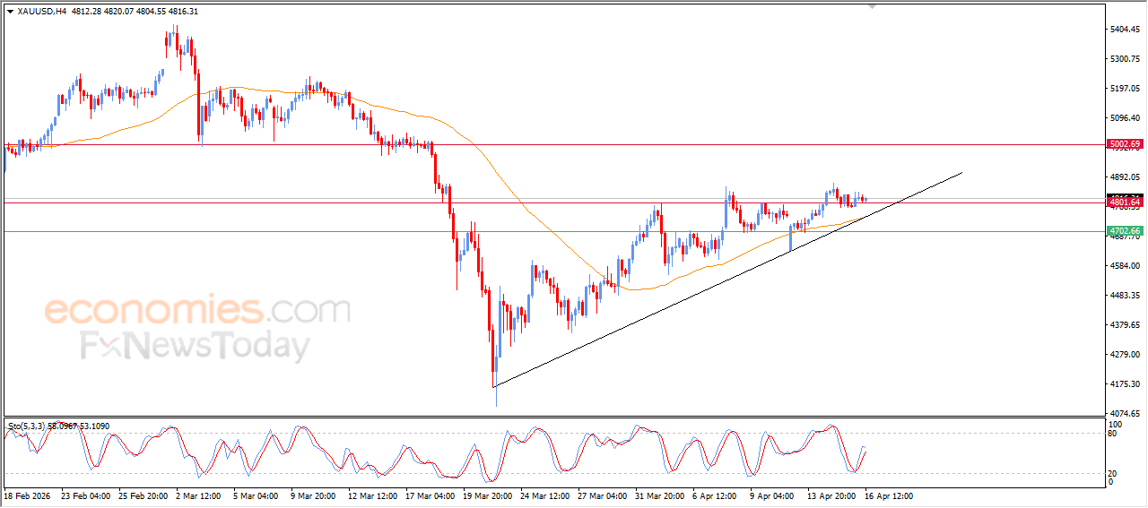 Gold price is showing calm movement in its recent intraday trading, remaining stable above the key resistance level of $4,800. The short-term trend is dominated by a bullish corrective movement, with price action moving along a supportive trendline. Positive pressure continues as the price trades above EMA50, reinforcing the strength of the current upward movement.