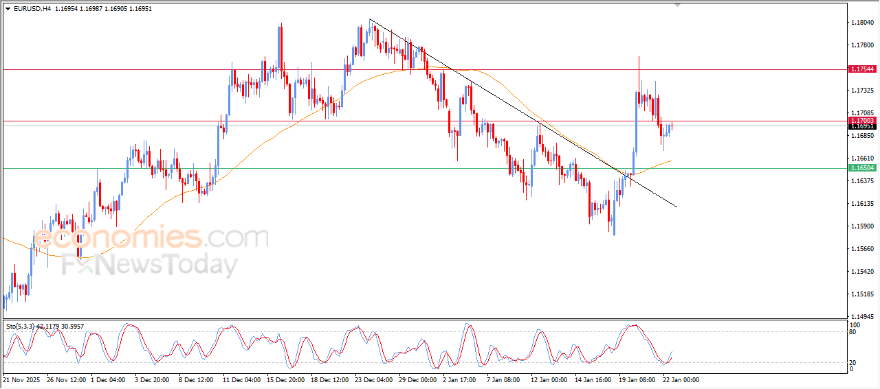 The price of EURUSD rose in its last intraday trading, supported by its continuous trading above EMA50, providing support base that provided bullish momentum, especially with the emergence of positive divergence on relative strength indicators, after reaching oversold levels, exaggerated compared to the price move with the emergence of positive signals from there, reinforcing the chances of extending its intraday gains.