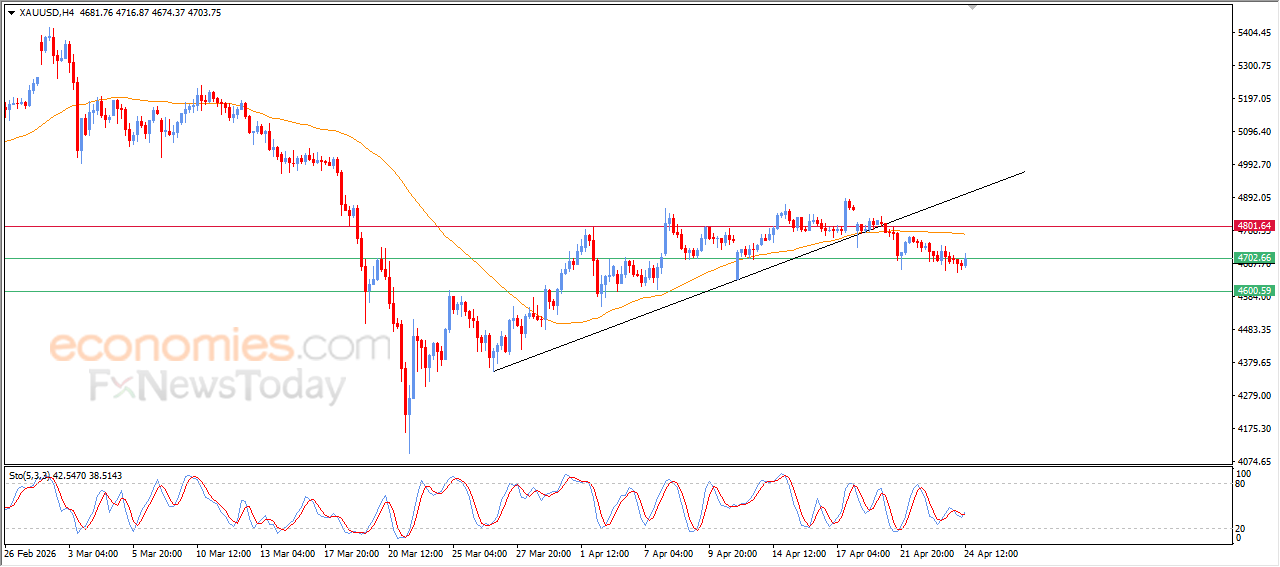 Gold price rose in its recent intraday trading, affected by the stability of the key support level at $4.700, gaining some positive momentum that helps it to settle amid the negative pressure that comes from its trading below EMA50, reducing the chances of gathering gains in the upcoming near period, however we might witness some current fluctuations, especially with the emergence of positive overlapping signals on the relative strength indicators, which might increase the positive momentum on the price.