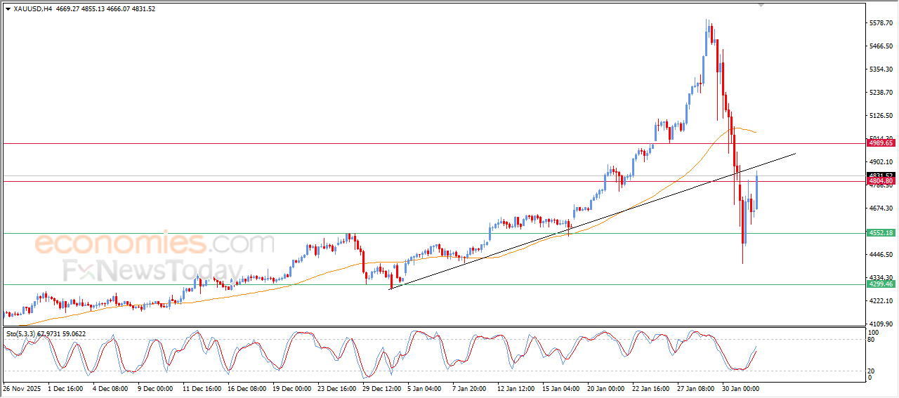 Gold prices (GOLD) rose during recent intraday trading after reaching our expected target at $4,550 support, which provided solid support base that helped it to gain bullish momentum. This rebound was supported by the positive signals from relative strength indicators, after reaching oversold levels, opening the way for recovering some of its previous losses.