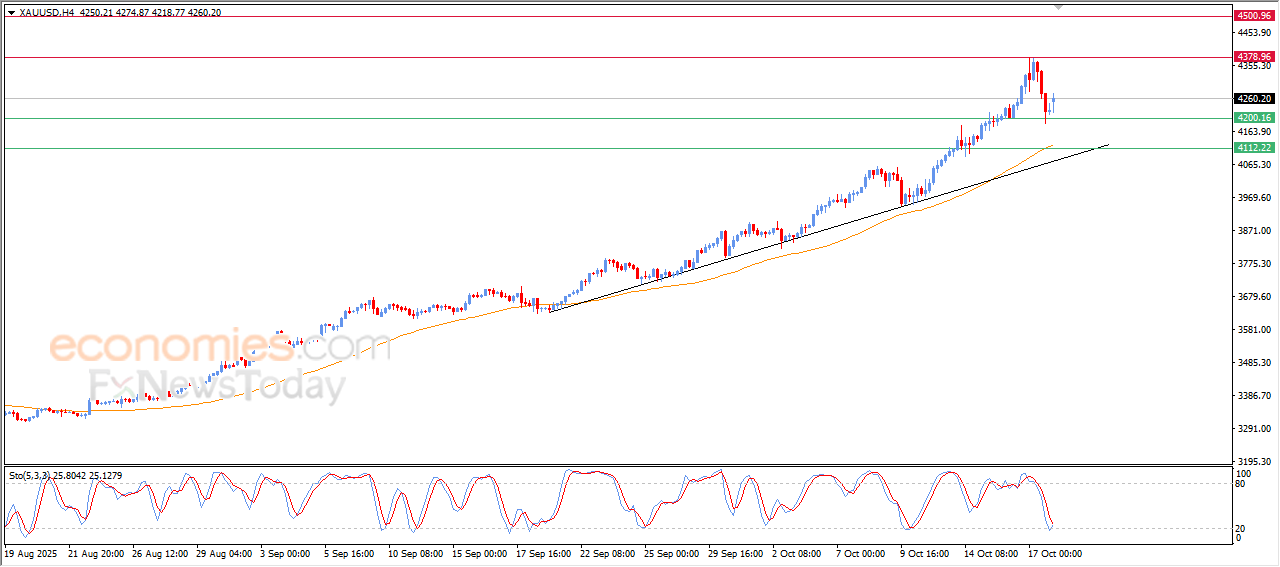 The (Gold) price rose in its last trading on the intraday levels, taking advantage of the stability of the main support at $4,200 that formed a solid base for the return of the bullish momentum, this rise was supported by the continuation of its trading above EMA50, reinforcing the stability of the main bullish trend on the short-term basis, especially with its trading alongside supportive minor trendline.