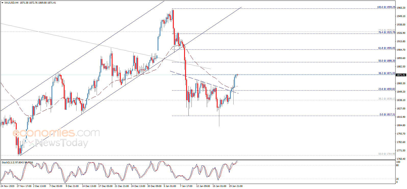 Gold price settles at 1871.55 level after the bullish rally that it witnessed yesterday, attempting to breach it, which supports the chances of extending the correctional bullish wave on the intraday basis, waiting to visit 1888.30 as a bext positive target.
