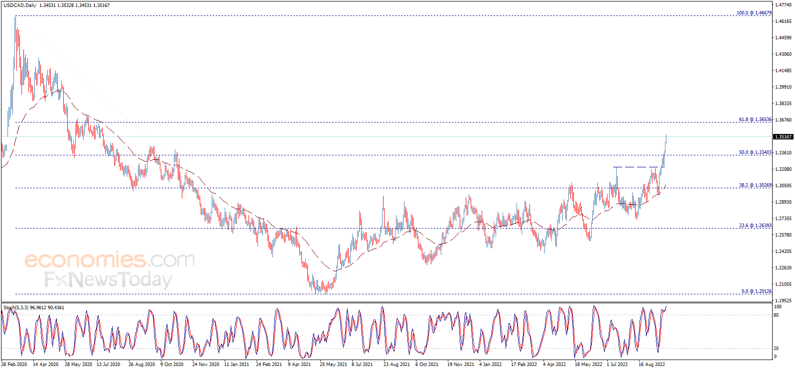 The USDCAD pair soared sharply yesterday to surpass 1.3390 level, and opens today with more rise to achieve our extended target at 1.3490, noticing that the price keeps providing the positive trades to surpass this level and open the way to achieve more expected gains, to head towards visiting 1.3650 areas as a next main station.