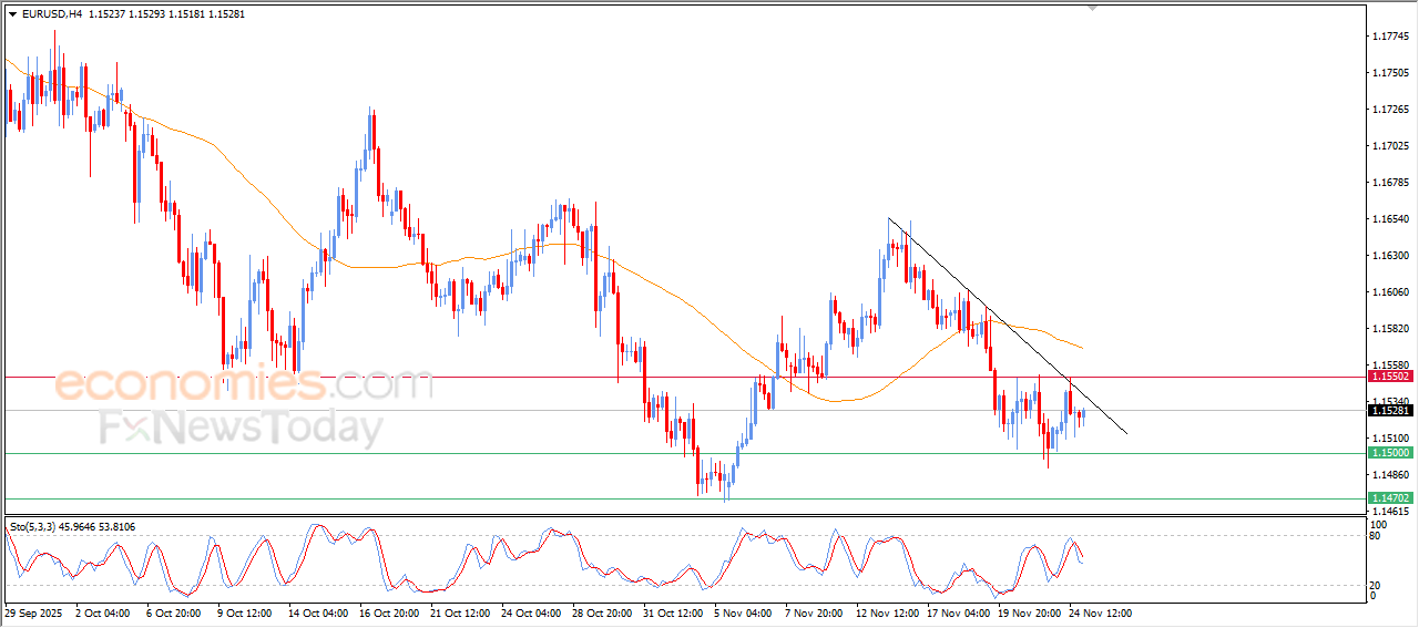 The (EURUSD) price rose slightly in its last intraday fluctuating trading, but this rise remains limited amid the negative pressure on the pair, that is represented by its stability below EMA50, and trading within main bearish trend range on a short-term basis, with its trading alongside minor trend line that reinforces this bearish trend.