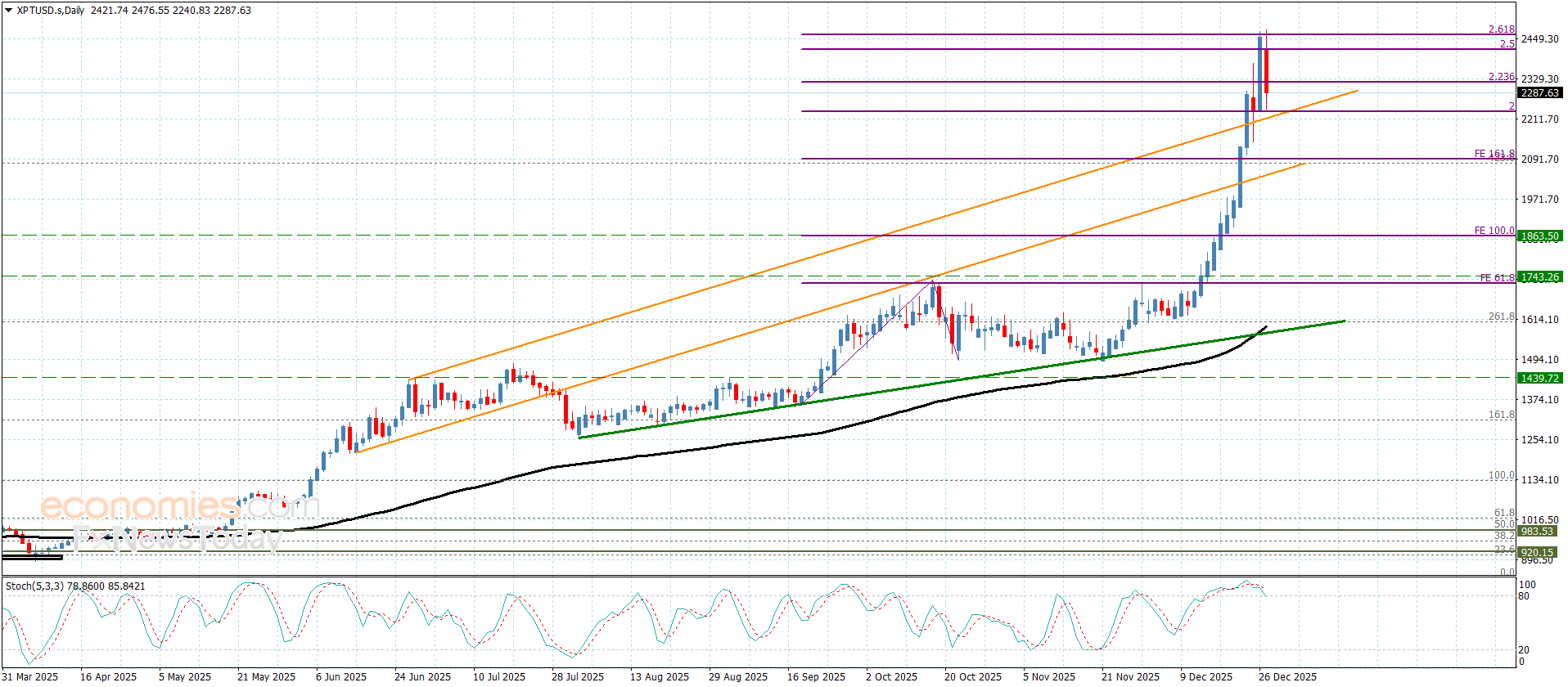 Platinum price began forming bearish corrective waves since morning, affected by the stability of the barrier at $2460.00, to begin gathering some gains by reaching $2235.00.