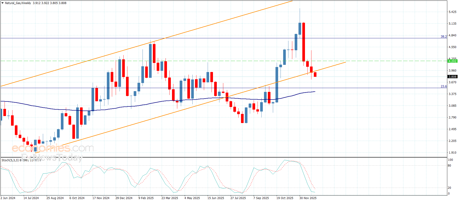 Natural gas price continued forming negative trading, reaching below $3.940 to confirm moving towards the previously suggested negative track, noting that the contradiction between the main indicators might force the price to provide new mixed trading until reaching the negative target at $3.520.