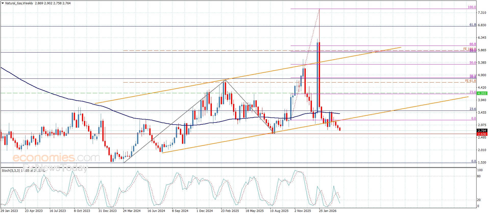 Natural gas price continued forming a new bearish movement, to confirm its surrender to the previously suggested bearish scenario, to settle near $2.750.