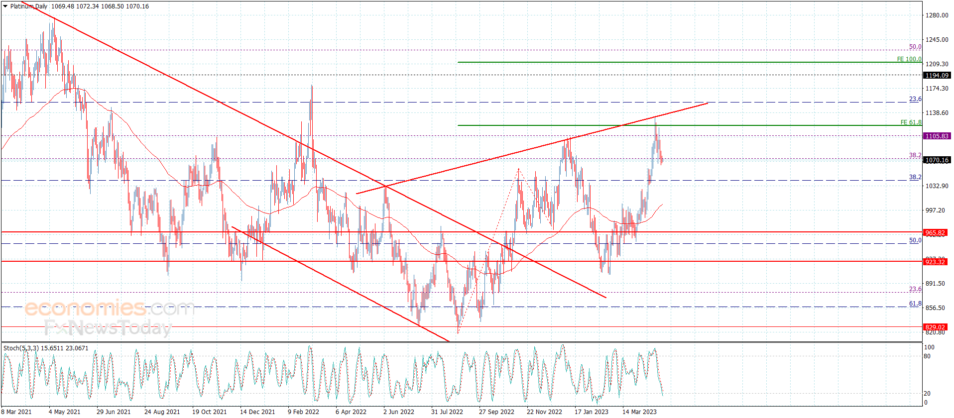 Platinum price still confined with many negative factors, as it settles below the additional barrier 1105.00, in addition to stochastic negative momentum signals.
