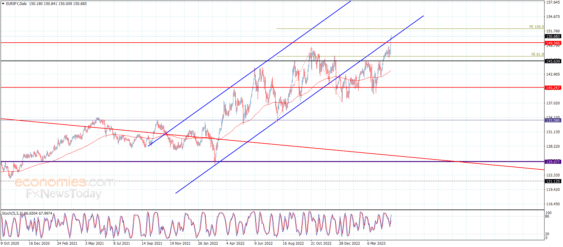 The expected trading range for today is between 150.00 and 151.45
