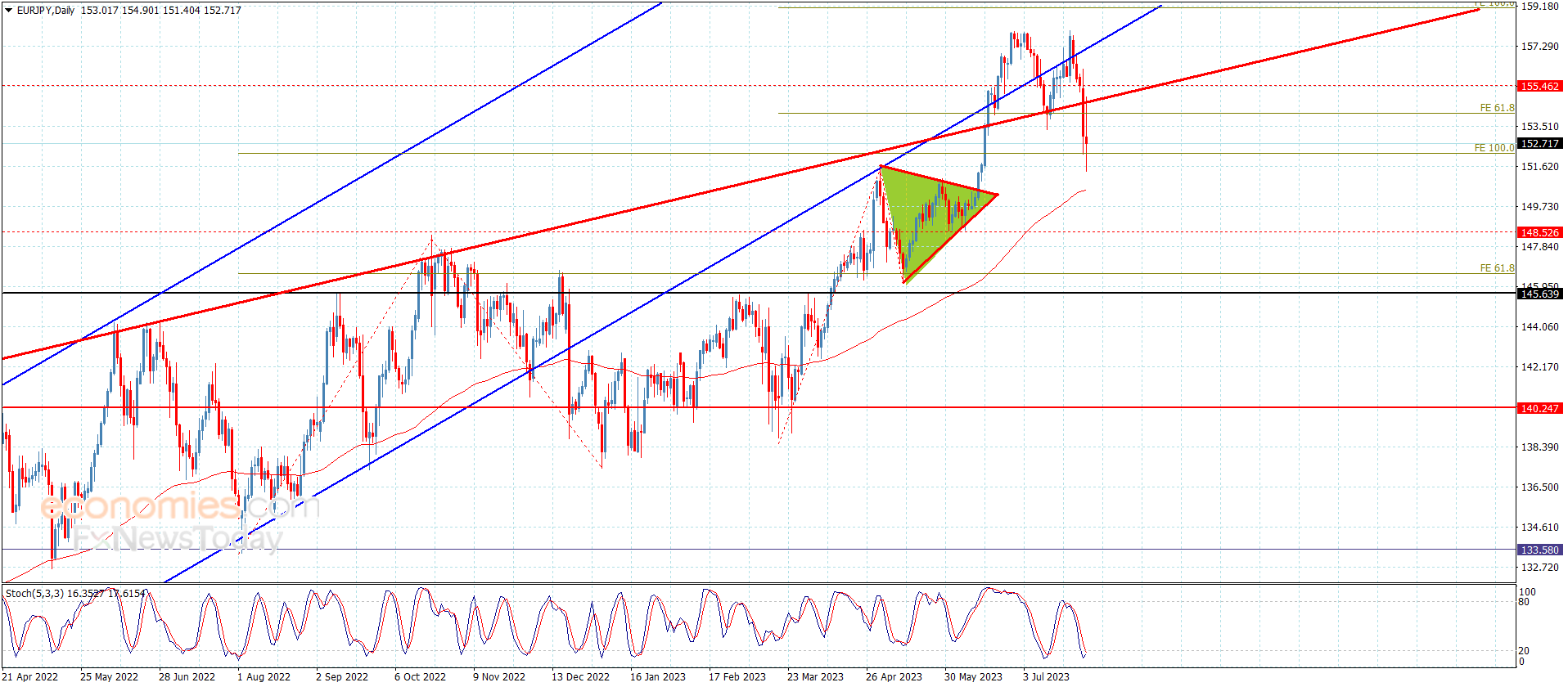 The EURJPY pair was affected by the strength of 155.45 barrier to force it to activate the negative track again, to notice suffering clear losses by declining towards 151.40 as appears on the chart.