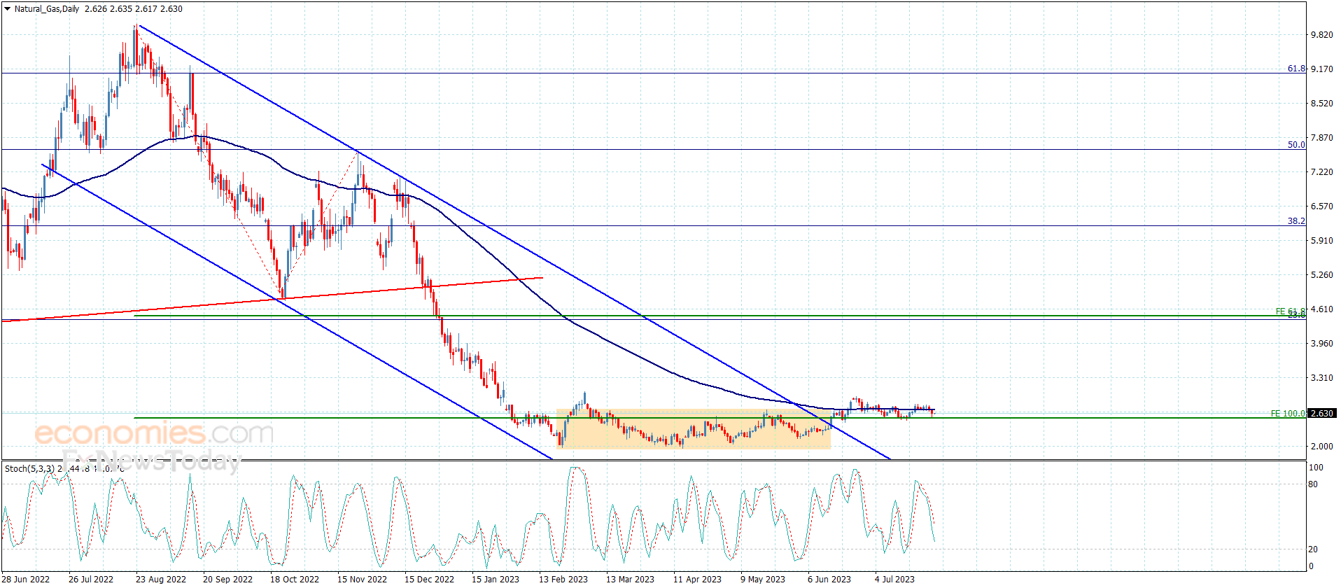 Natural gas price continues the sideways fluctuation without achieving any new positive target due to the contradiction between stochastic negativity against the frequent fluctuation above the additional support 2.550.