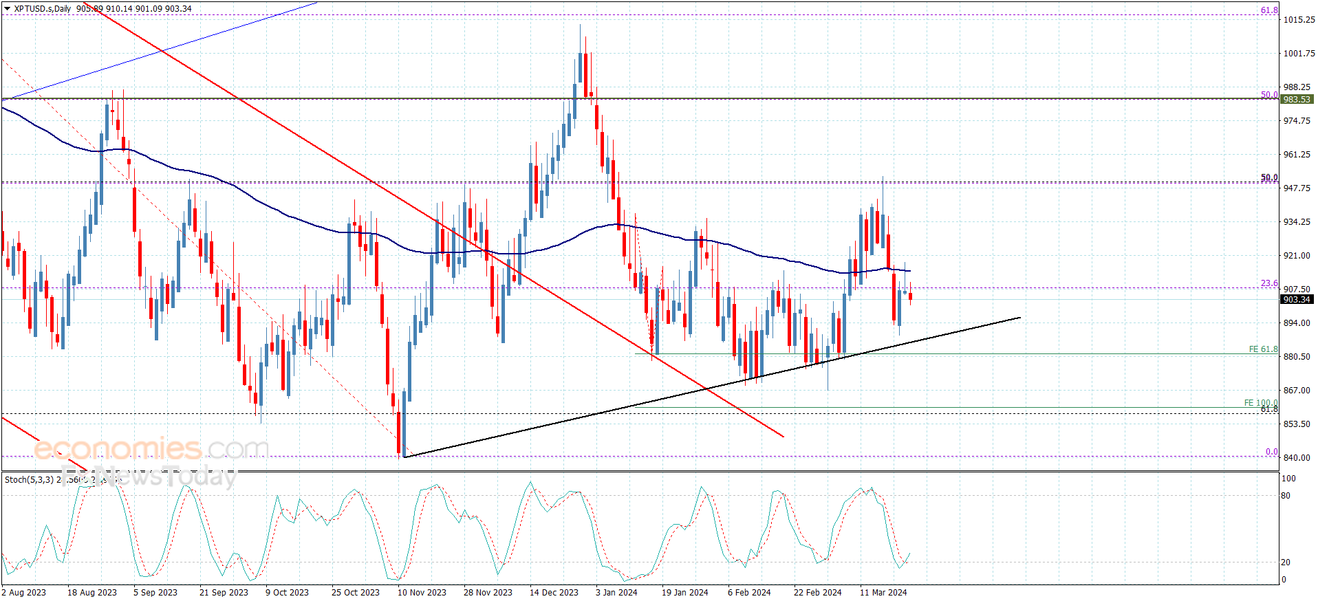 Despite platinum price fluctuating below the MA55 at 915.00$ again and forming new correctional waves by reaching 901.00$, that won’t affect the main bullish track that depends on the stability of the major support at 885.00$.