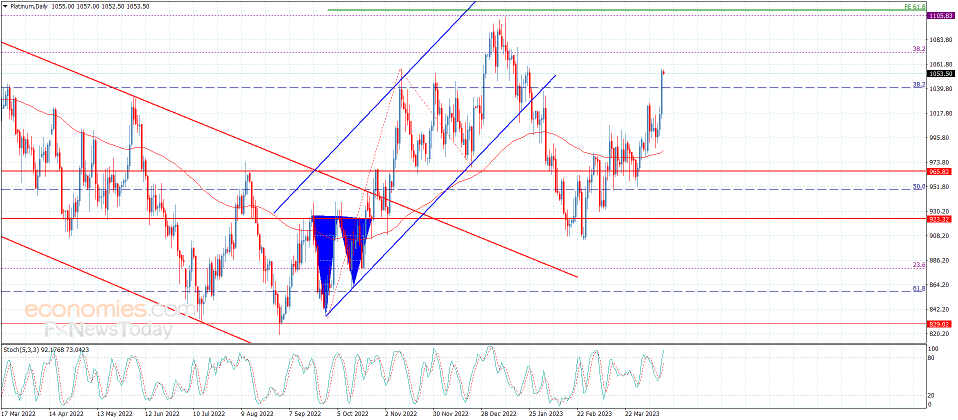 Platinum price resumed its bullish attack to notice surpassing 1040.00 barrier and achieve additional gains by touching 1058.00 level, which confirms its surrender to the domination of the bullish bias, to expect getting positive momentum and target additional stations that might extend towards 1072.00 followed by reaching 1105.00 as a next main target for the bullish trades.