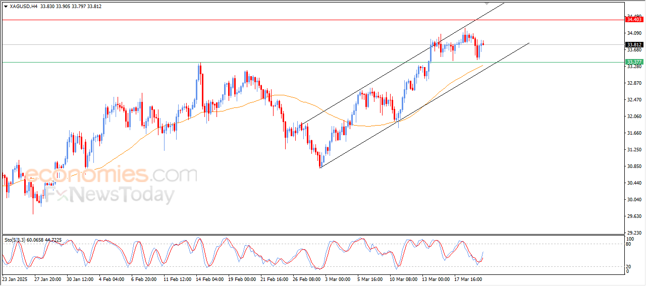 Silver price edged higher in intraday trading while moving within an ascending price channel, as a positive divergence starts forming in the Stochastic after reaching oversold levels compared to the price’s movements, with positive signals streaming out of it, coupled with positive support due to trading above the 50-candle SMA.