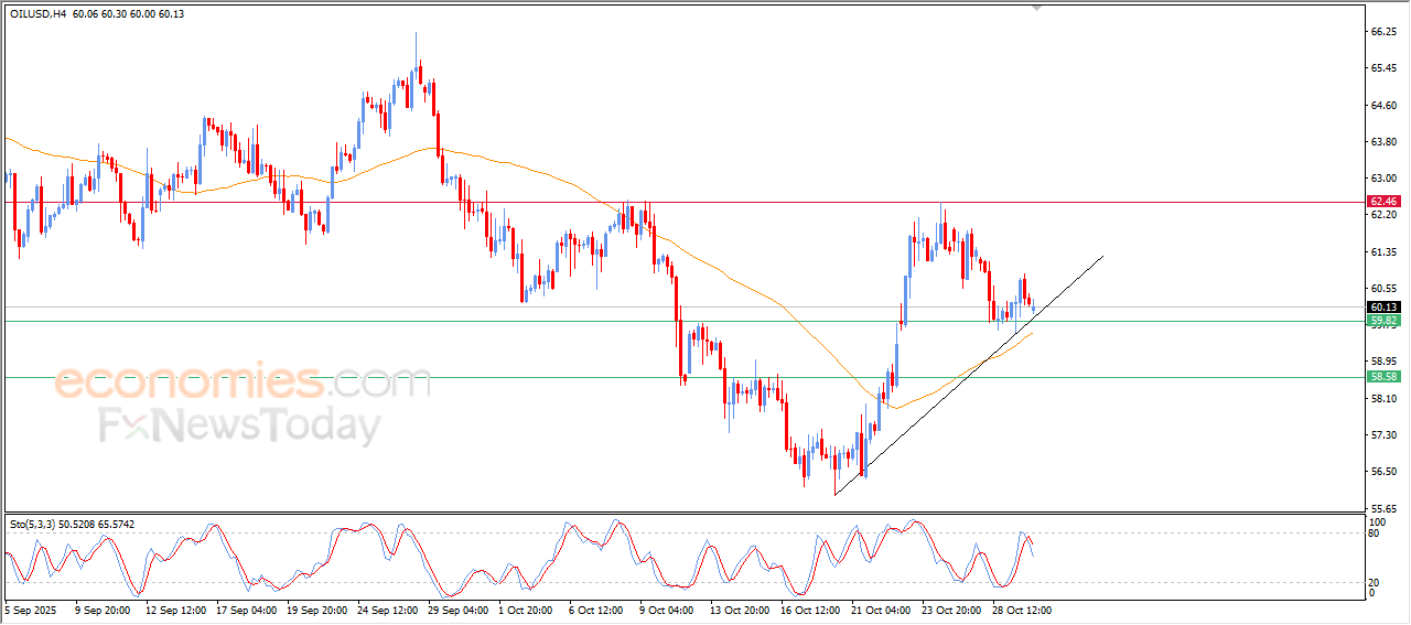 Crude oil price declined during its last intraday trading, affected by the emergence of negative divergence on the relative strength indicators, indicating the exaggerated overbought conditions that must be offloaded before resuming any new rise, this decline came with the price’s leaning in steep bullish corrective trend line on the short-term basis, confirming the strength of the current bullish track and its ability to continue supporting the trading.