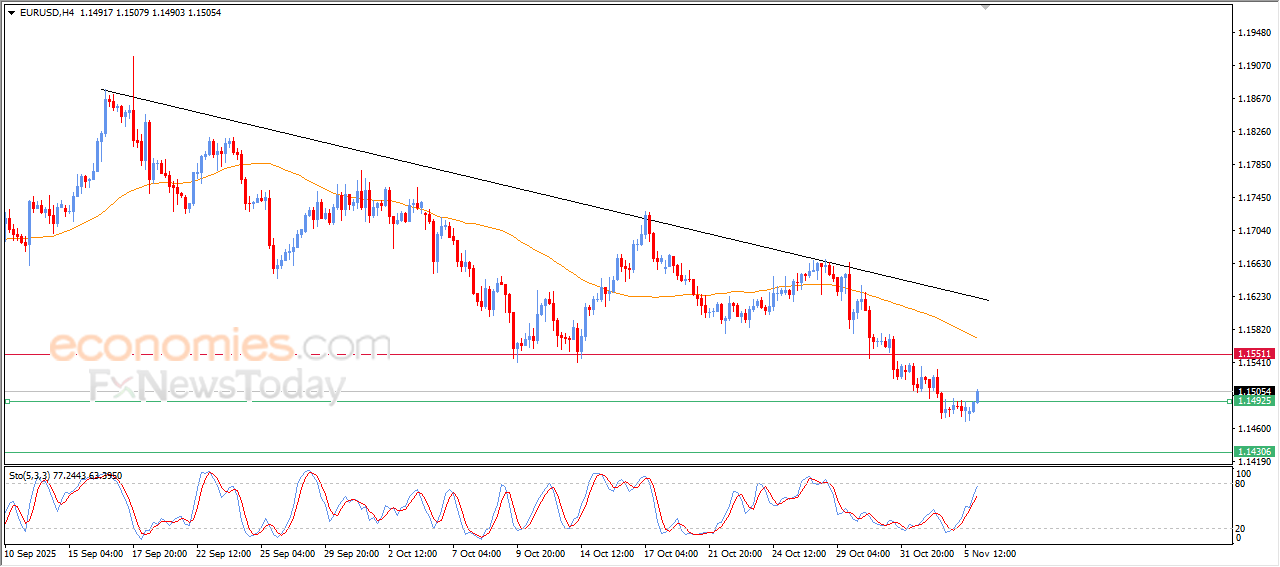 The (EURUSD) price rose in its last intraday trading, in attempt to recover some of its previous losses, but this rise pushed the relative strength indicators towards exaggerated overbought levels compared to the price move, indicating an expected quick decline in the bullish momentum.