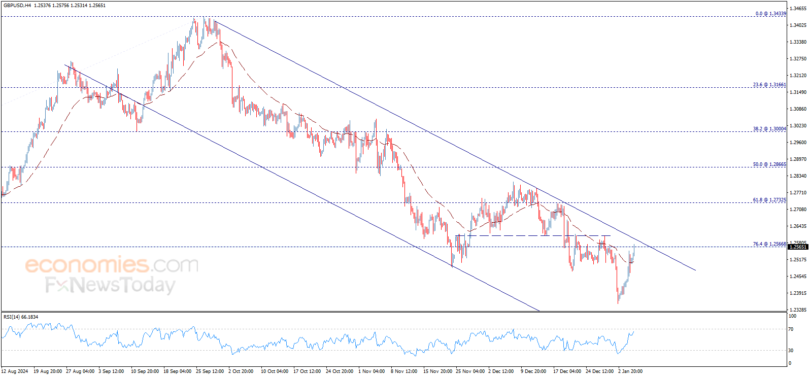 The GBPUSD price returns to rise to test the first key resistance 1.2566$, which urges caution from the upcoming trading, as continuing the rise and surpassing 1.2595$ will push the price to build bullish wave that its targets begin by visiting 1.2735$ areas.