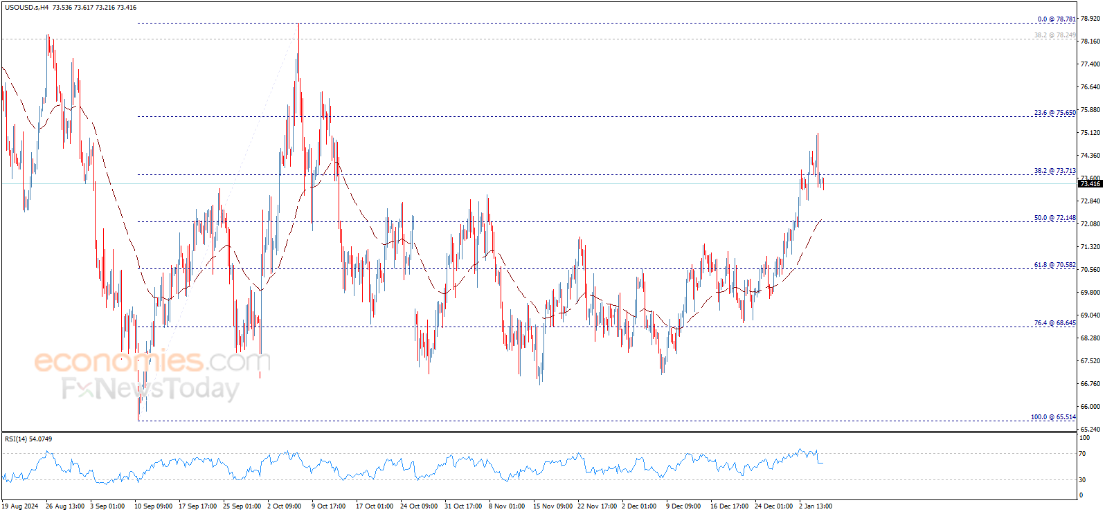 Crude oil price settles below 73.70$, to keep the bearish trend scenario valid and active for today, which conditions the price stability below this level, waiting to get negative motive that assist to push the price to head towards our main expected target at 72.15$.