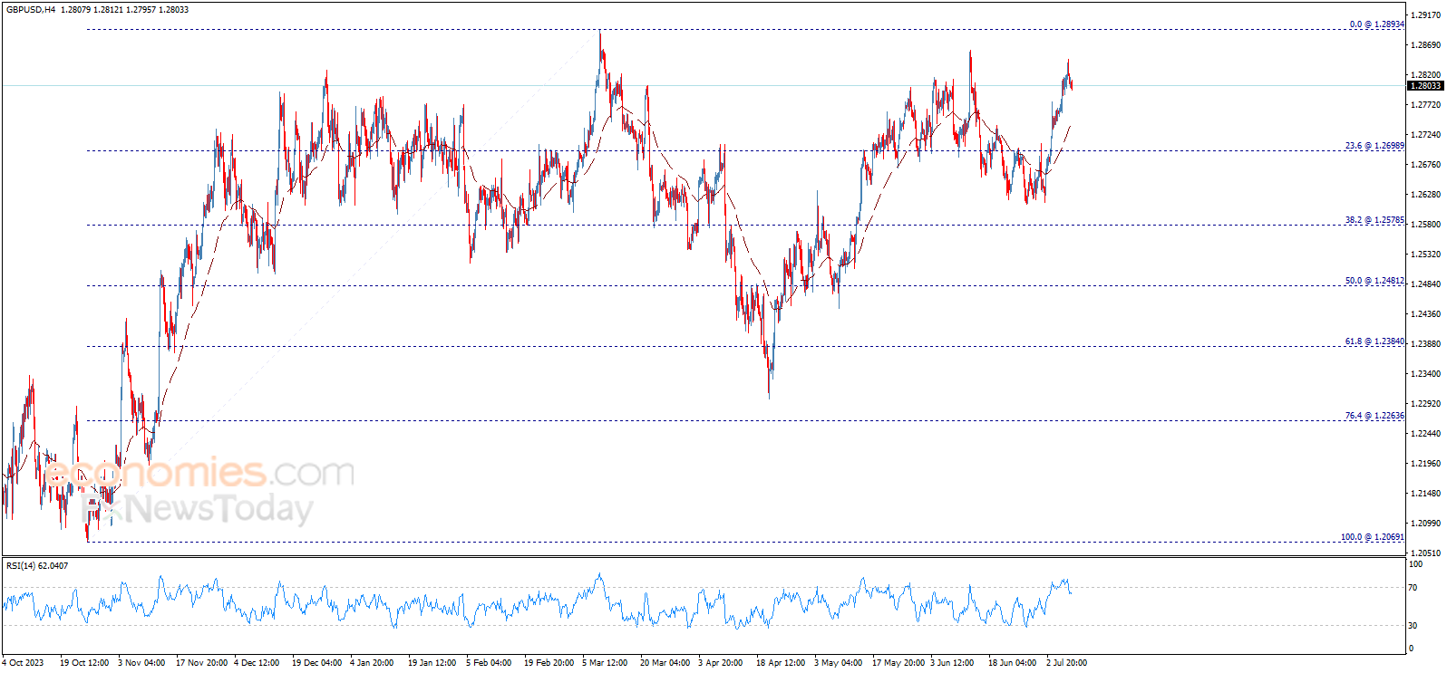 - The GBPUSD price settles around 1.2800$ barrier, and as we mentioned this morning, the price needs to hold above this level to continue the expected rise for today, which targets 1.2890$ as a next main station, noting that the EMA50 keeps supporting the suggested bullish wave.