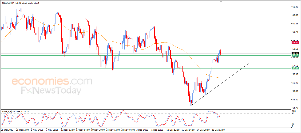 Crude oil declined slightly during its recent intraday trading, within a natural profit-taking phase after the previous strong rises, attempting to rearrange its technical position and gaining bullish momentum that might help it to resume the rise, amid the dominance of strong bullish corrective wave on a short-term basis.