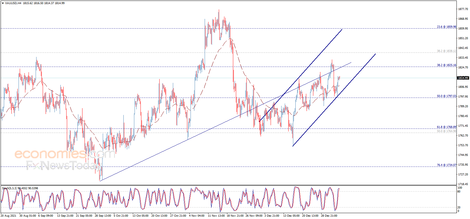 Gold price recovers well after leaning on 1800.00 barrier, getting good support by the EMA50, waiting for more rise in the upcoming sessions to test 1825.15 mainly, which breaching it represents the key to rally towards 1860.00.