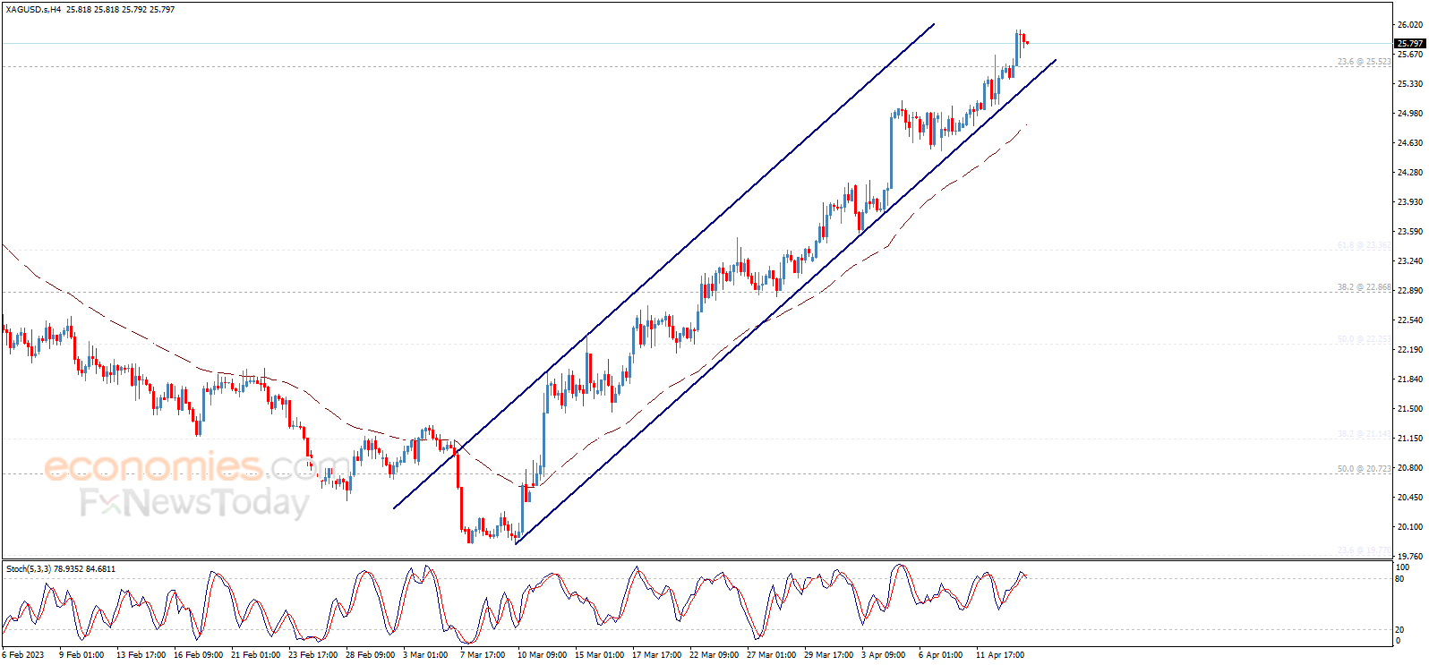 Silver prices provided additional positive trades to reach the thresholds of the second waited target at 26.05, starting today with slight bearish bias affected by stochastic negativity, waiting to get positive motive that assists to push the price to resume the bullish wave that its targets extend to reach 26.95 areas.