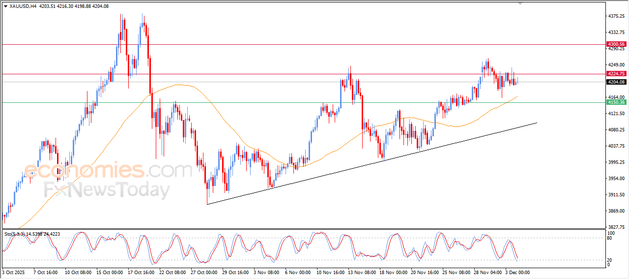 Gold witnesses tight range fluctuated trading in its recent intraday levels, amid its attempts to gain bullish momentum that may help it to breach the solid resistance at $4,225, supported by the continuation of the dynamic support due to its trading above EMA50, reinforcing the stability and dominance of the main bullish trend on the short-term basis.