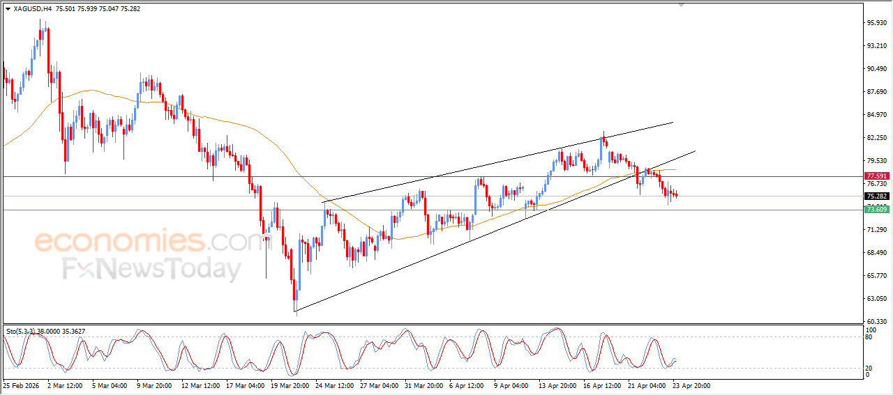 Silver declined during its recent intraday trading, affected by a previously formed negative technical pattern represented by a rising wedge on the short-term timeframe, which increased selling pressure and pushed the price to continue falling.