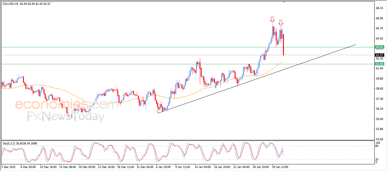 Crude oil prices declined in their last intraday trading, to break $63.50 key support, which represents the neckline of negative technical pattern that formed on short-term basis, which is the double top pattern, this decline was accompanied by the emergence of negative signals from relative strength indicators, after offloading its oversold conditions, opening the way for recording this decline.
