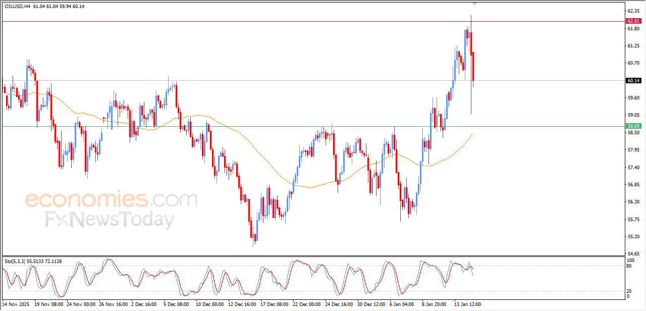 Crude oil prices declined sharply in their last intraday trading, after reaching $62.00 resistance, which represented a key target in our previous analysis, which pushed the price to enter clear profit- taking wave after the previous strong rises.