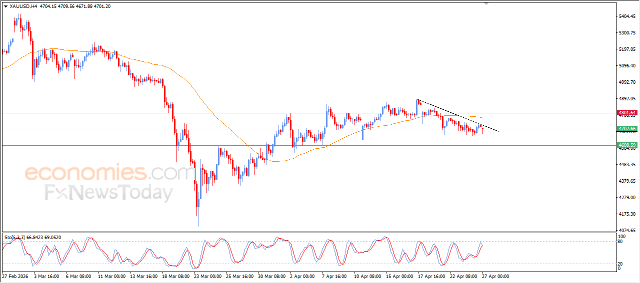 Gold price declined during its recent intraday trading, affected by continued negative pressure as it remains below EMA50, which continues to limit chances of recovery in the near term. The price is moving along a short-term downward sloping trendline, increasing selling pressure and reinforcing the current bearish outlook.