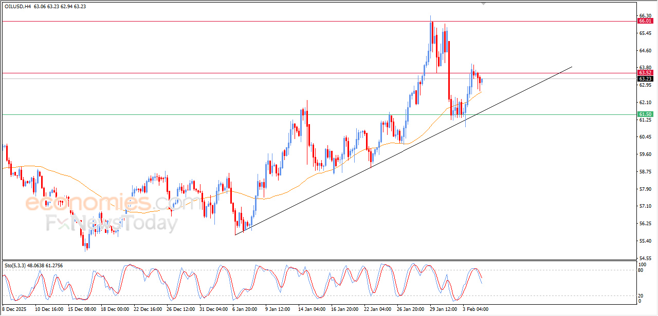 The (crude oil) price rose in its last intraday trading, after its leaning on EMA50’s support, gaining some bullish momentum that helped it achieve these gains, preparing to reach the current resistance at $63.50, taking advantage of its trading alongside bullish trend line on short-term basis, besides offloading its overbought conditions on relative strength indicators, opening the way for extending the gains in the intraday basis.