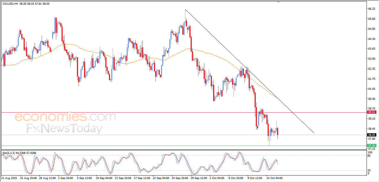 The (crude oil) declined in its last intraday trading, with the emergence of the negative on the relative strength indicators, after reaching overbought levels, amid the main bearish trend on the short-term basis and its trading below EMA50.