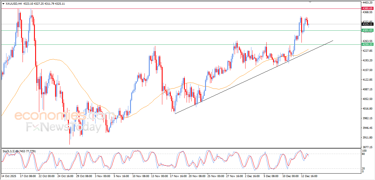 (Gold) declined in its last intraday trading, with the emergence of the negative signals on the relative strength indicators, after reaching overbought levels, attempting to gain bullish momentum that may help it to recover and rise again, amid the continuation of the positive support due to its trading above EMA50, with its trading alongside minor bullish trend line on the short-term basis.