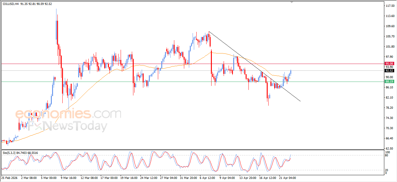Crude oil prices extended its gains in its latest intraday trading, surpassing the negative pressure of EMA50, supported by the emergence of the positive signals from the relative strength indicators, despite reaching overbought levels, affected by breaching bearish corrective trend line on short-term basis, which helped it to reinforce its last gains.