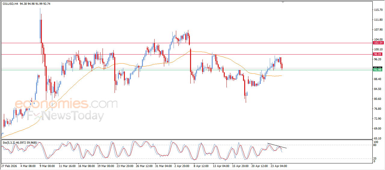 Crude oil prices continued to decline during recent intraday trading, affected by negative signals from the relative strength indicators after forming a bearish divergence that pressured the price. This pushed it to search for a higher low that could act as a base to help regain positive momentum and recover. This comes while dynamic support remains intact, represented by trading above EMA50, which enhances the chances of recovery in the near term.