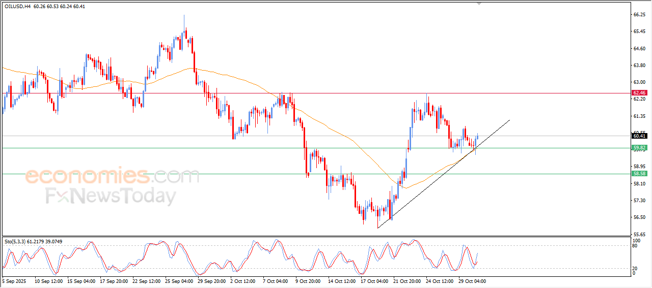 The (crude oil) rose in its last trading on the intraday levels, affected by leaning on the support of EMA50, gaining bullish momentum that helped it to achieve these gains, amid the dominance of bullish corrective wave on the short-term basis, with the emergence of the positive signals on the relative strength indicators, after reaching oversold levels.