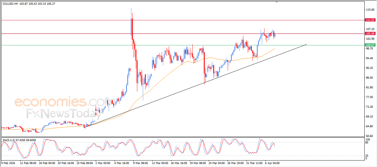 Crude oil (Crude Oil) resumed its upward movement during its latest intraday trading, recovering much of its earlier losses for the day. This comes amid attempts to break the strong resistance level at $105.00, supported by continued trading above EMA50 which reinforces the stability and dominance of the main bullish trend in the short term.